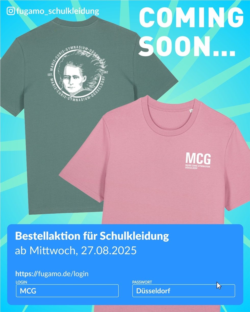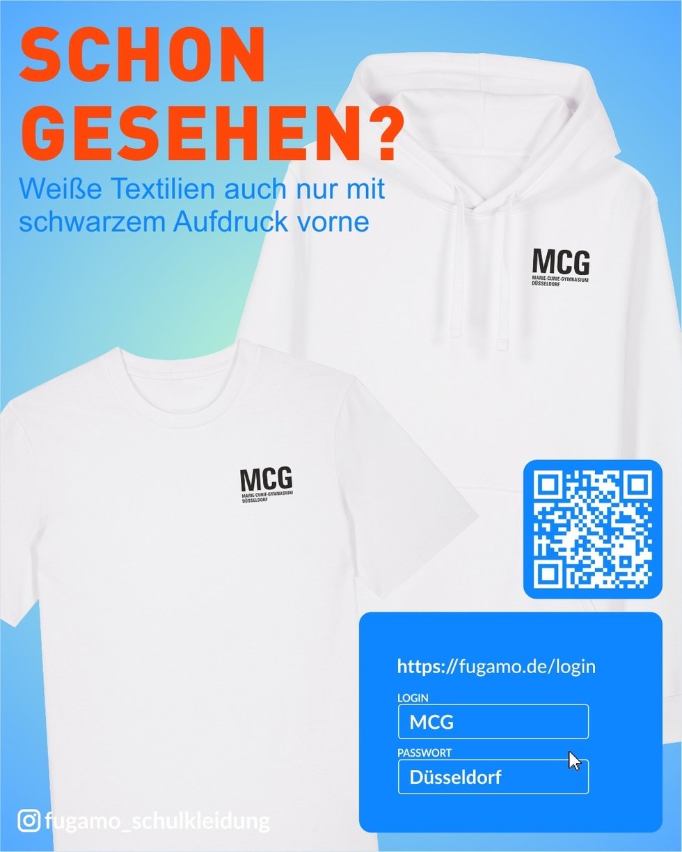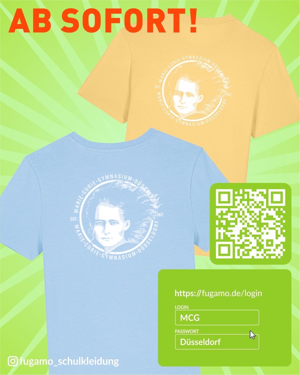 Und hier geht es direkt zum Schulshop (der Hyperlink funktioniert leider nur nach Klick auf 'Mehr lesen...'): https://fugamo.de/login/?user=MCG&pw=Düsseldorf