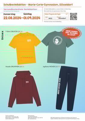 ab kommenden Donnerstag, den 22.08.2024 habt Ihr und haben Sie die Möglichkeit, an einer versandkostenfreien Bestellaktion für unsere Schulkleidung teilzunehmen.